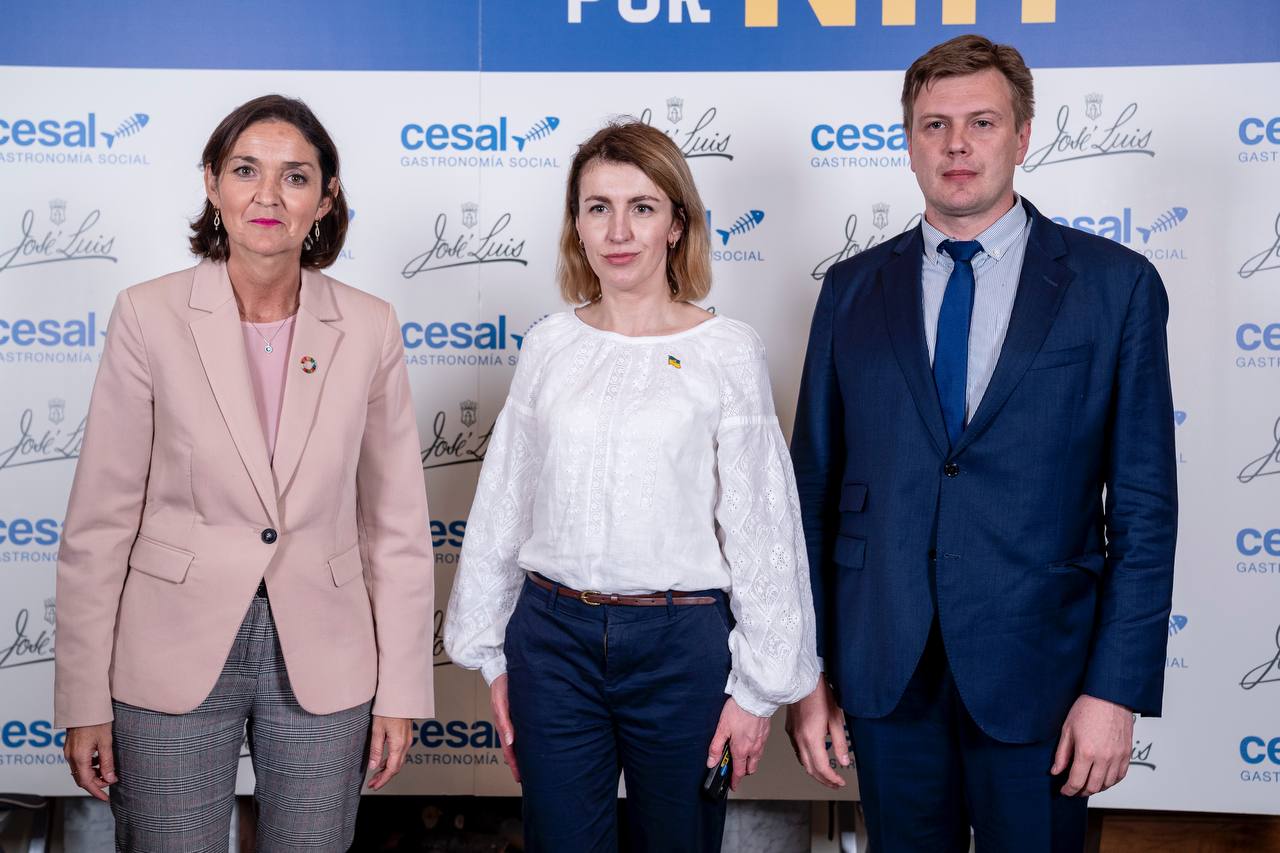 Los chefs Chema de Isidro y César Ruiz unieron a 100 amigos en cocina para ofrecer un servicio exclusivo en el que se han involucrado decenas de empresas e instituciones para ayudar al trabajo de la ONG Cesal con los refugiados ucranianos en España, Polonia y Rumanía. Entre los asistentes que no quisieron faltar al evento se encontraron la ministra de Industria, Comercio y Turismo, Reyes Maroto; Dmytró Lozýtskyi, Primer Secretario de Asuntos Económicos de la Embajada de Ucrania en el Reino de España y Mariana Oleskiv, Jefa de la Agencia Estatal para el Desarrollo del Turismo.