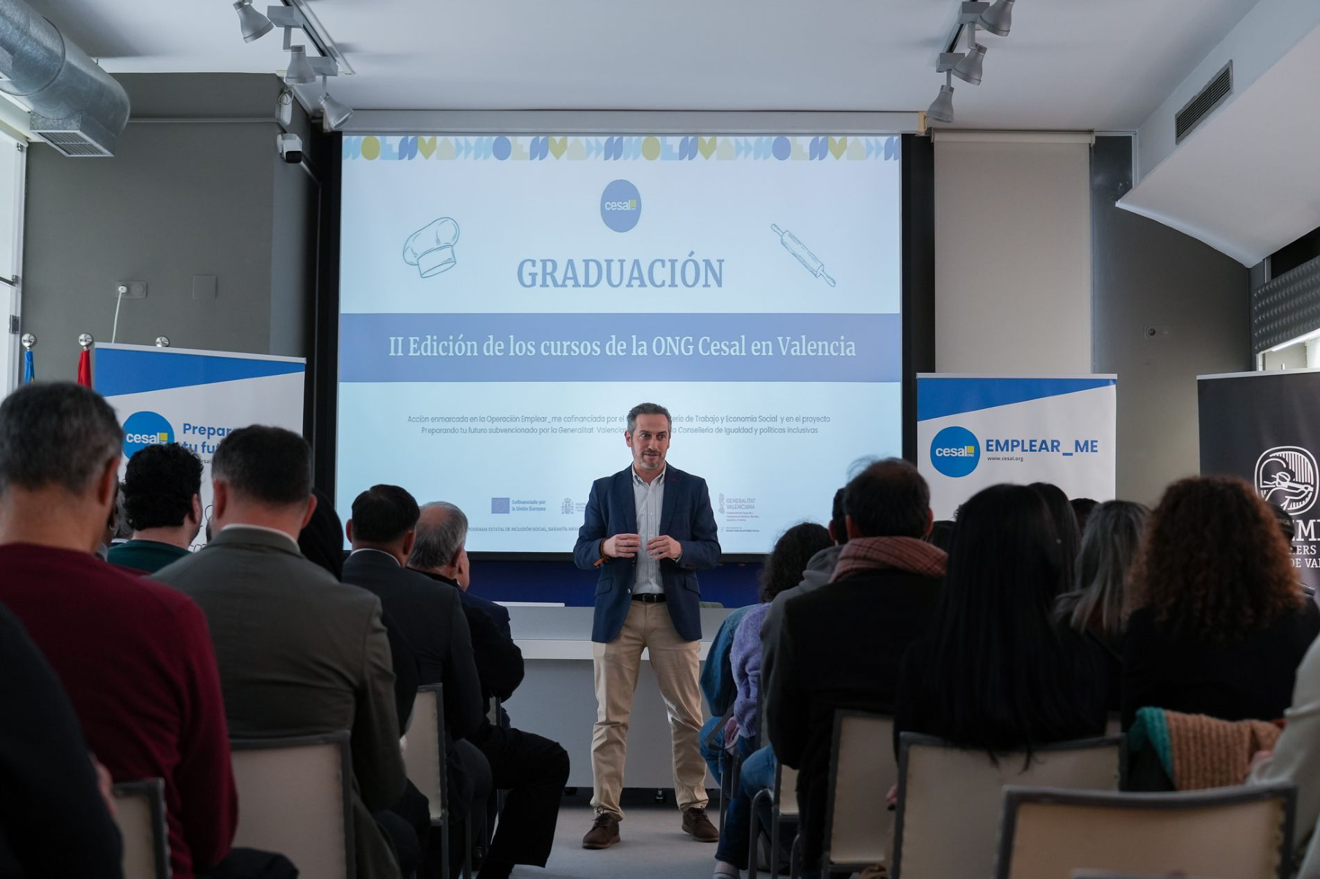 La ONG Cesal en Valencia, en colaboración con el Gremio de Panaderos y Pasteleros de Valencia y Valencia Club Cocina, celebra la graduación de la II edición del curso en Hostelería y la I en Panadería. Este programa de formación, dirigido a jóvenes en situación de vulnerabilidad, ha permitido a 33 estudiantes adquirir conocimientos prácticos y teóricos en estos oficios, abriéndoles nuevas oportunidades en el mercado laboral.