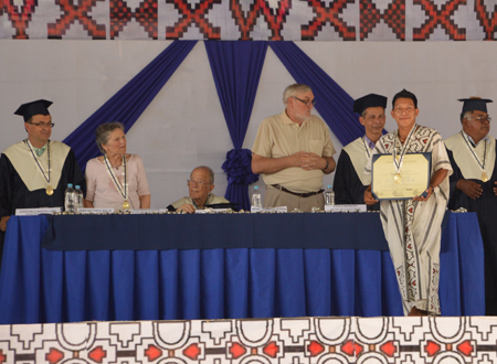 La ceremonia de graduación tuvo lugar el pasado 14 de diciembre en el Coliseo Municipal de Atalaya (Ucayali), presidida por Monseñor Gerardo Zerdín, Obispo del Vicariato de San Ramón y precursor de la Universidad. Asimismo, estuvieron presentes las principales autoridades de la Universidad Católica Sedes Sapientiae (UCSS), encabezados por el rector el Dr. Joaquín Martínez Valls.