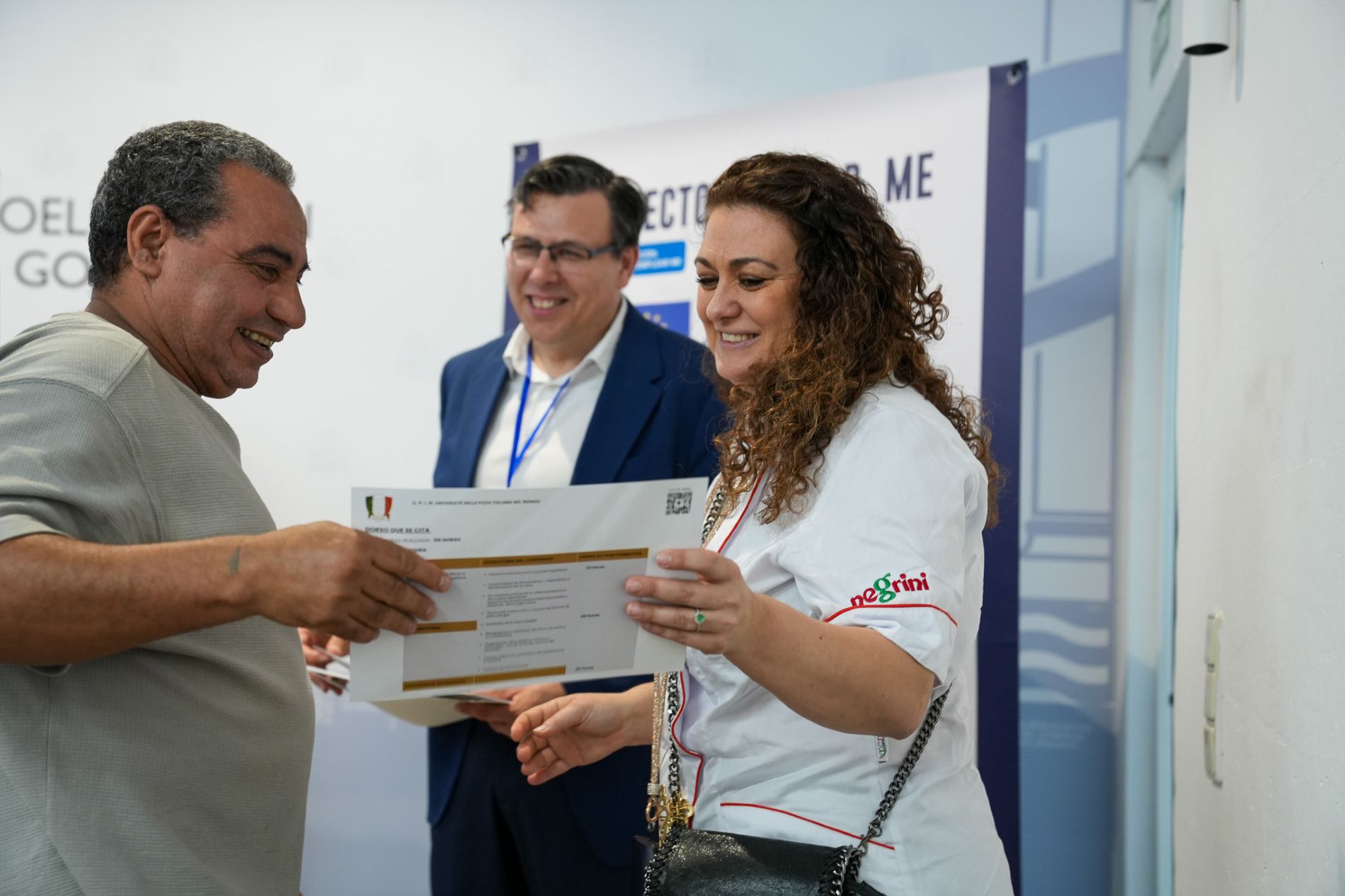 Gustavo Duque, Delegado de Cesal en Andalucía, entrega el diploma de carnicería a un alumno.
